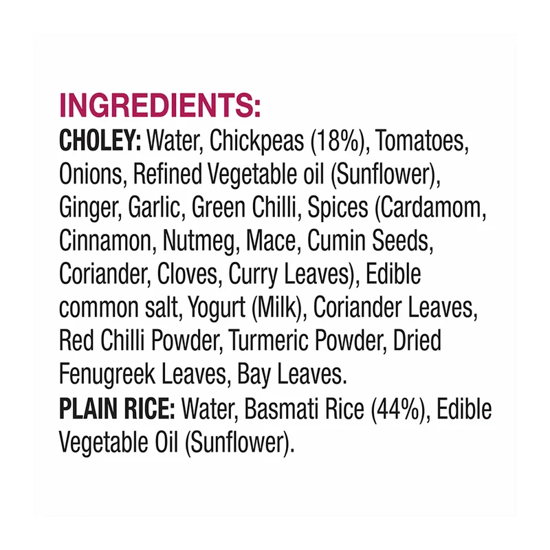 Treat yourself to a mouth-watering meal of haldiram’s Purani Dilli Choley with Plain Rice. This Indian combo meal consists of chickpeas cooked in a tomato and onion gravy with aromatic spices, served with long grain steamed basmati rice. This meal is ready to eat in minutes, just heat and serve. Haldiram’s Purani Dilli Choley with Plain Rice is a perfect choice for a quick and satisfying lunch or dinner. Try it today and enjoy the authentic taste of Delhi cuisine!